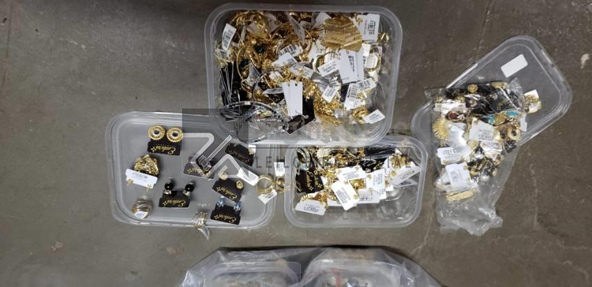 Lote: 0191 - JÓIAS » DIVERSAS 350 UNID BIJOUTERIAS / SEMIJÓIAS "EUDORA FOLHEADOS": 179 BRINCOS; 27 CORRENTES; 63 PINGENTES; 59 ANÉIS; 55 PULSEIRAS. PEÇAS COM ETIQUETA / IDENTIFICAÇÃO INDIVIDUAL.