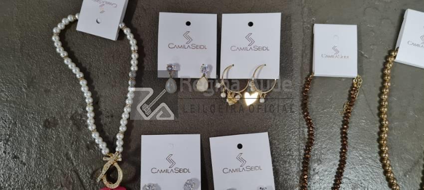 (80 UNID) SEMIJÓIAS DIVERSAS "CAMILA SEIDL": 57 UND BRINCOS; 16 UND COLARES / CHOKERS; 03 UND CORRENTES / PINGENTES; 04 UND PULSEIRAS.